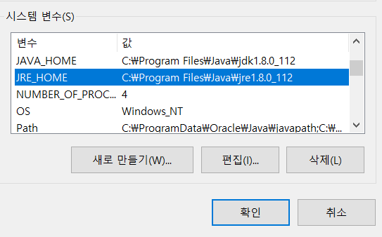 아래와 같이 JRE_HOME 추가해 준다.