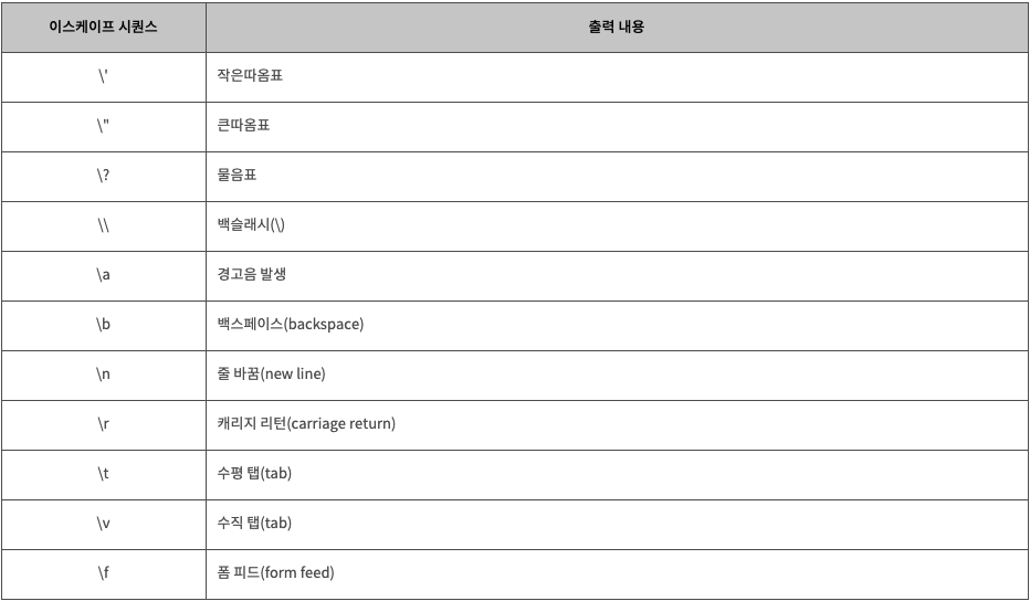 자주 쓰는 이스케이프 문자(escape sequence)
