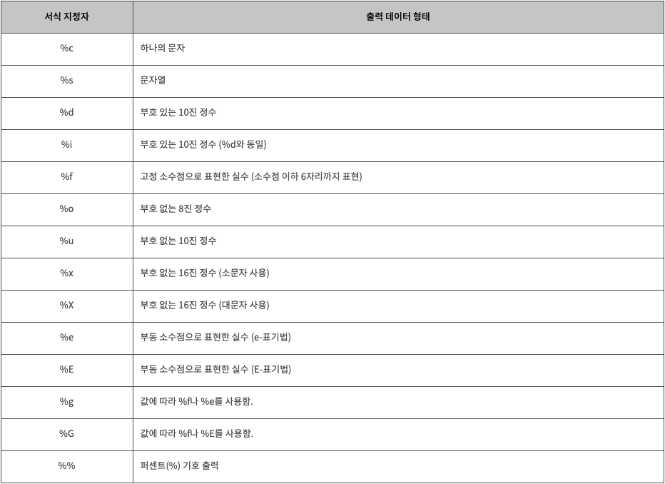 자주 쓰는 서식 지정자(format specifier)